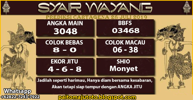 PREDIKSI PASARAN CARTAGENA TOGEL DI MAJUTOTO 28 07 2019 MAJUTOTO